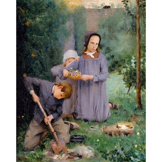 Children Burying a Bird Black Modern Wood Framed Art Print with Double Matting by Weir, J Alden