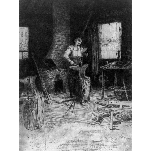 The blacksmiths shop Black Modern Wood Framed Art Print with Double Matting by Weir, J Alden
