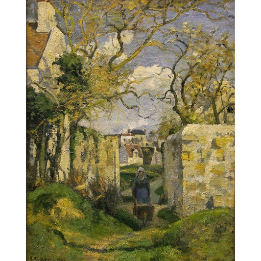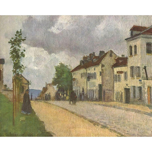 Street in Pontoise Black Modern Wood Framed Art Print with Double Matting by Pissarro, Camille