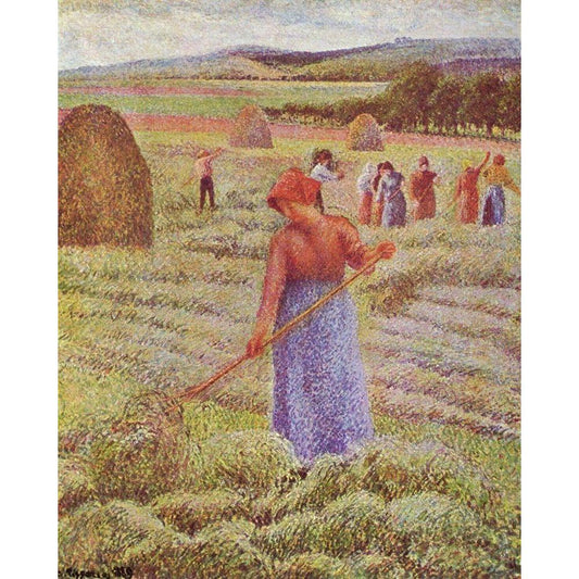 Hay harvest at Eragny-sur-epte Black Modern Wood Framed Art Print with Double Matting by Pissarro, Camille