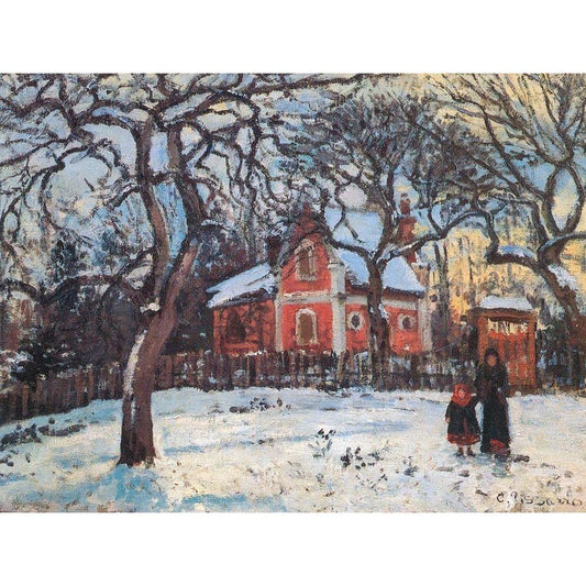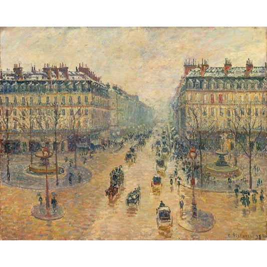 Avenue de LOpera, Effect of Snow in the Morning Black Modern Wood Framed Art Print with Double Matting by Pissarro, Camille