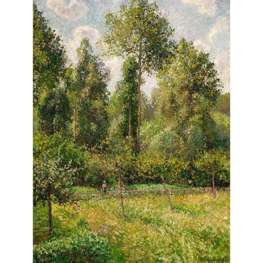 Poplars, Eragny Black Modern Wood Framed Art Print with Double Matting by Pissarro, Camille