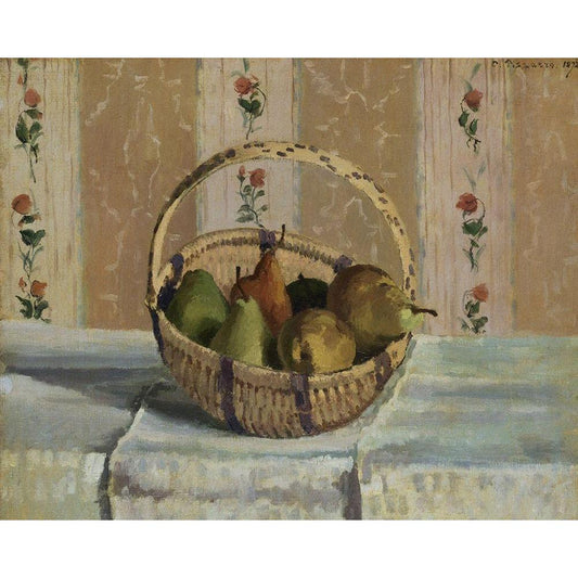 Still Life. Apples and Pears in a Round Basket Black Modern Wood Framed Art Print with Double Matting by Pissarro, Camille