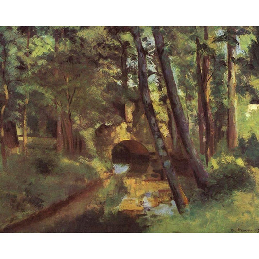 The Small Brigde, Pontoise Black Modern Wood Framed Art Print with Double Matting by Pissarro, Camille