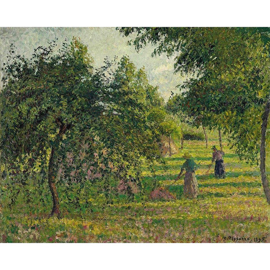 Apple trees and tedders, Eragny Black Modern Wood Framed Art Print with Double Matting by Pissarro, Camille