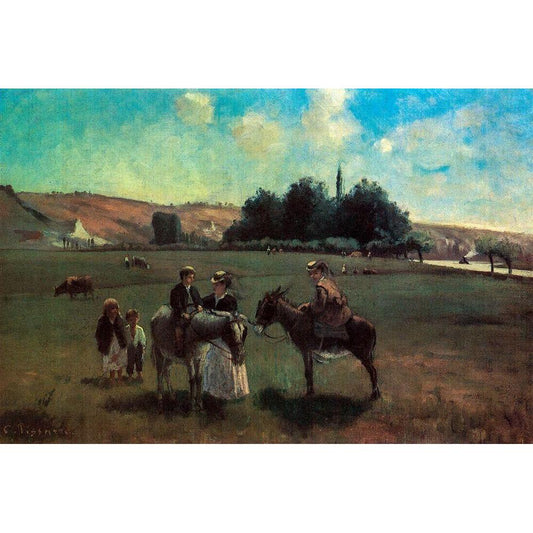 Donkey ride in La Roche-Guyon Black Modern Wood Framed Art Print with Double Matting by Pissarro, Camille