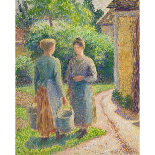 Two Women in a Garden Black Modern Wood Framed Art Print with Double Matting by Pissarro, Camille