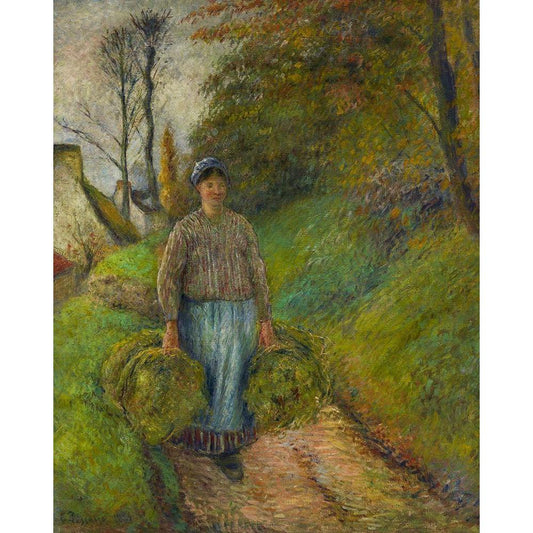 Peasant Woman Carrying Two Bundles of Hay Black Modern Wood Framed Art Print with Double Matting by Pissarro, Camille