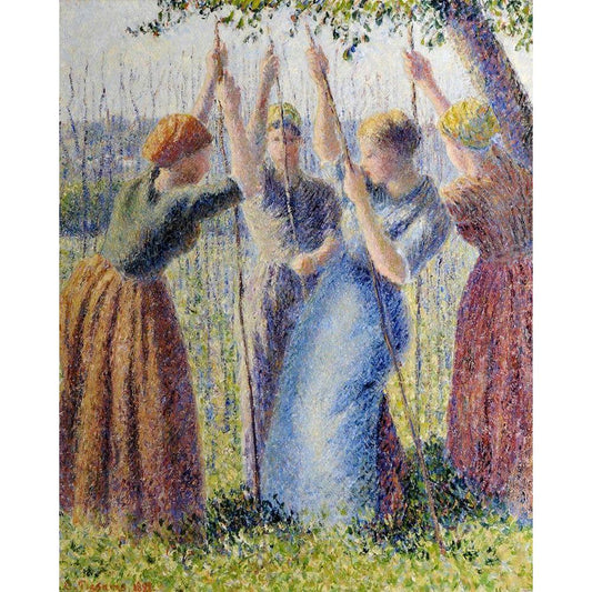 Peasant women planting Black Modern Wood Framed Art Print with Double Matting by Pissarro, Camille