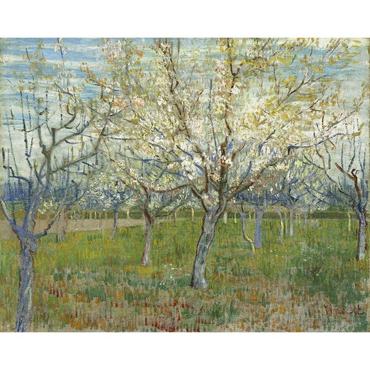 Orchard with Blooming Apricot Trees Black Modern Wood Framed Art Print with Double Matting by van Gogh, Vincent