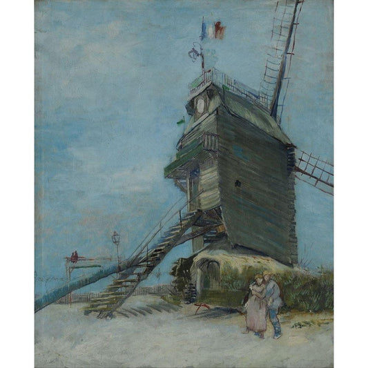Le Moulin de la Galette Black Modern Wood Framed Art Print with Double Matting by van Gogh, Vincent