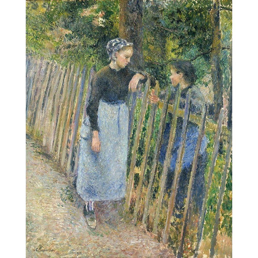 Conversation Black Modern Wood Framed Art Print with Double Matting by Pissarro, Camille