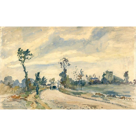Louveciennes, Route de Saint-Germain Black Modern Wood Framed Art Print with Double Matting by Pissarro, Camille