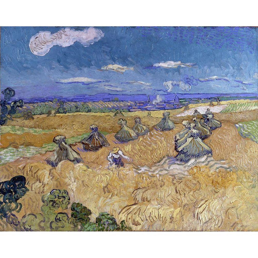 Wheat Stacks with Reaper Black Modern Wood Framed Art Print with Double Matting by van Gogh, Vincent