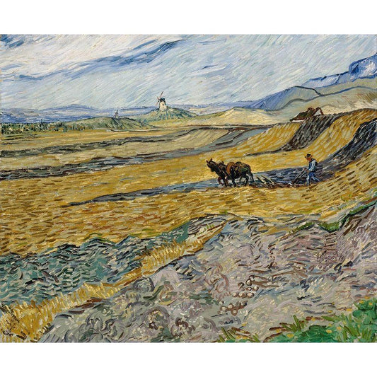 Enclosed Field with Ploughman Black Modern Wood Framed Art Print with Double Matting by van Gogh, Vincent