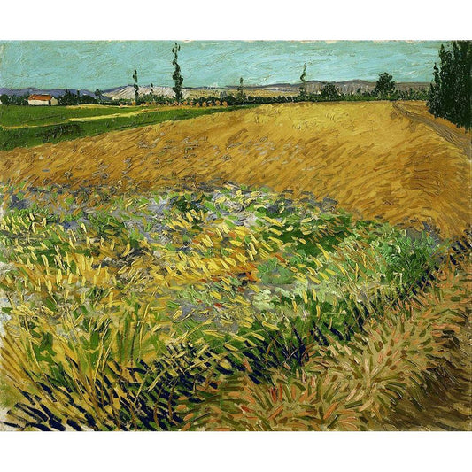 Wheatfield Black Modern Wood Framed Art Print with Double Matting by van Gogh, Vincent