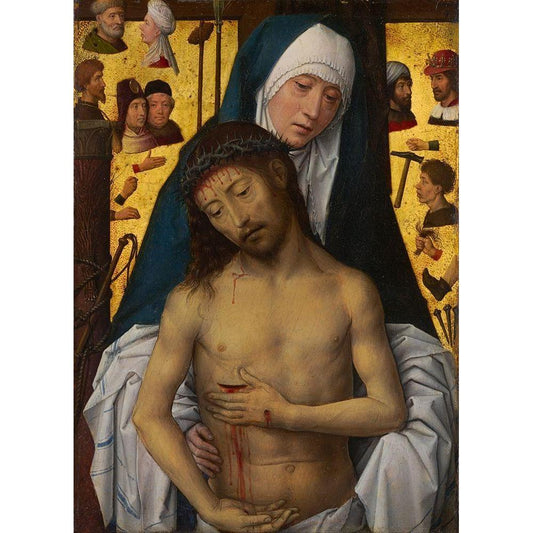 The Man of Sorrows in the arms of the Virgin Black Modern Wood Framed Art Print with Double Matting by Memling, Hans