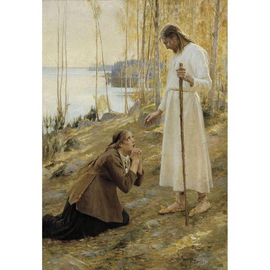 Christ and Mary Magdalene, a Finnish Legend Black Modern Wood Framed Art Print with Double Matting by Edelfelt, Albert