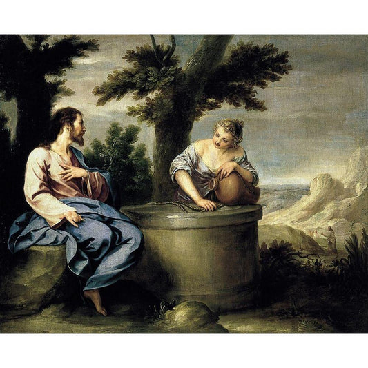 Cristo y la Samaritana Black Modern Wood Framed Art Print with Double Matting by Cano, Alonso