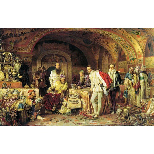 Ivan the Terrible Showing His Treasury to Jerome Horsey Black Modern Wood Framed Art Print with Double Matting by Litovchenko, Alexander