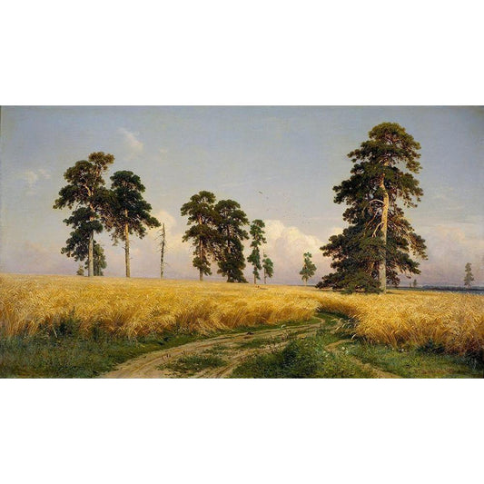 Rye Fields Black Modern Wood Framed Art Print with Double Matting by Shishkin, Ivan