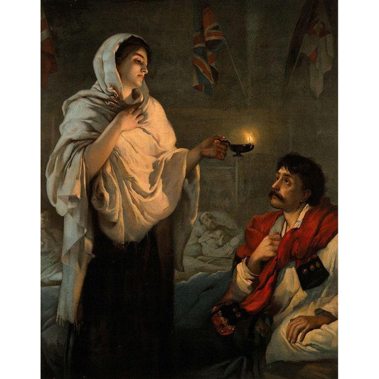 The Lady with the Lamp, Florence Nightingale Black Modern Wood Framed Art Print with Double Matting by Rae, Henrietta