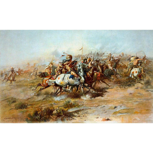 The Custer Fight Black Modern Wood Framed Art Print with Double Matting by Russell, Charles Marion