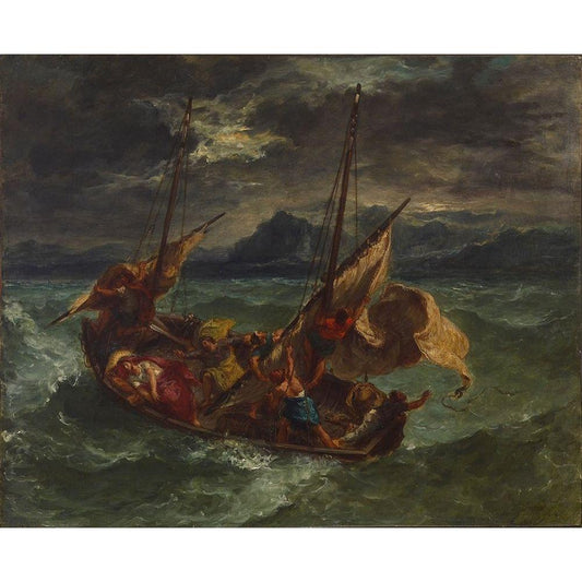Christ on the Sea of Galilee Black Modern Wood Framed Art Print with Double Matting by Delacroix, Eugene