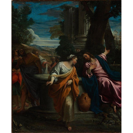 Christ and the Samaritan Woman Black Modern Wood Framed Art Print with Double Matting by Carracci, Annibale