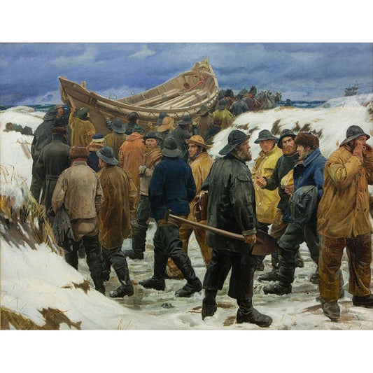 The lifeboat is driven through the dunes Black Modern Wood Framed Art Print with Double Matting by Ancher, Michael