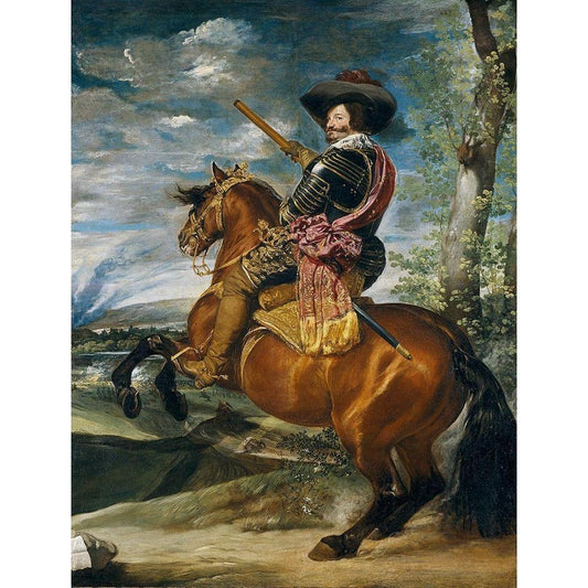 Equestrian Portrait of the Count-Duke of Olivares Black Modern Wood Framed Art Print with Double Matting by Valazquez, Diego