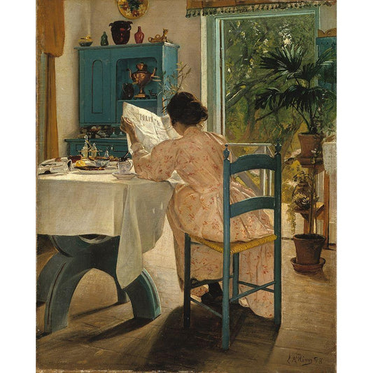 At Breakfast Black Modern Wood Framed Art Print with Double Matting by Ring, L. A.
