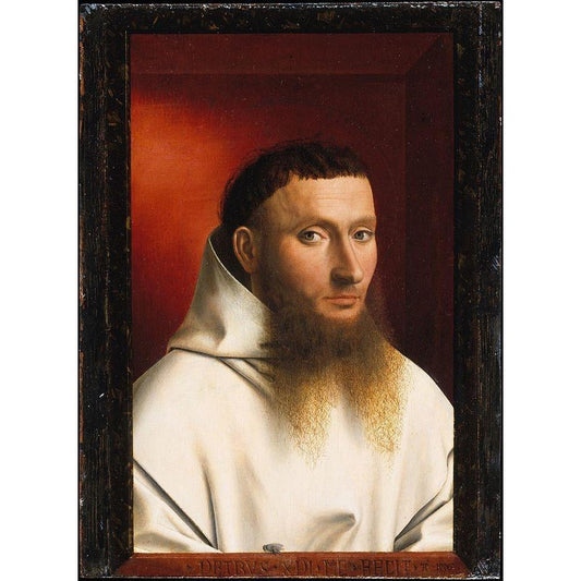 Portrait of a Carthusian Black Modern Wood Framed Art Print with Double Matting by Christus, Petrus