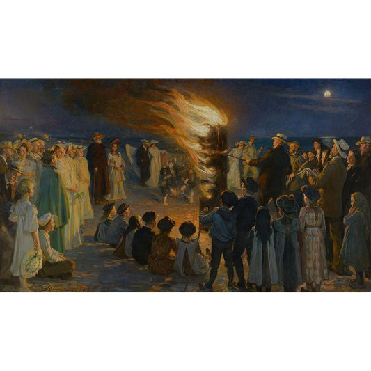 Midsummer Eve Bonfire on Skagen Beach Black Modern Wood Framed Art Print with Double Matting by Kroyer, Peder Severin