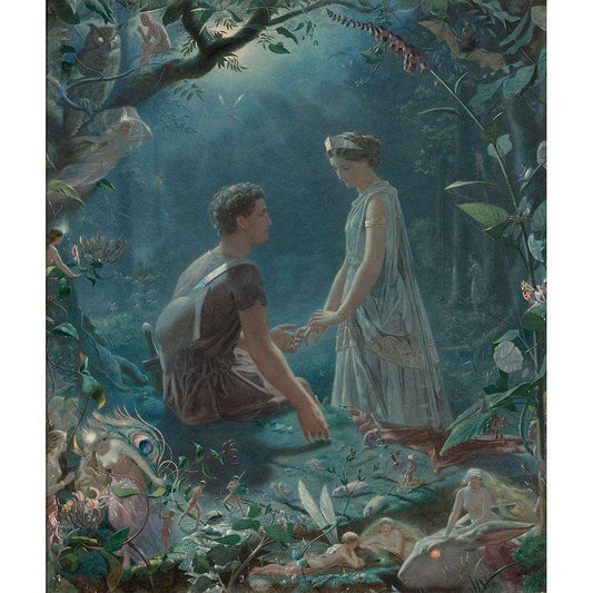 Hermia and Lysander Black Modern Wood Framed Art Print with Double Matting by Simmons, John