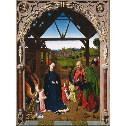 Nativity Black Modern Wood Framed Art Print with Double Matting by Christus, Petrus
