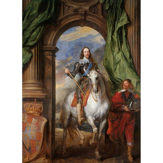Charles I with M. de St Antoine Black Modern Wood Framed Art Print with Double Matting by van Dyck, Anthony