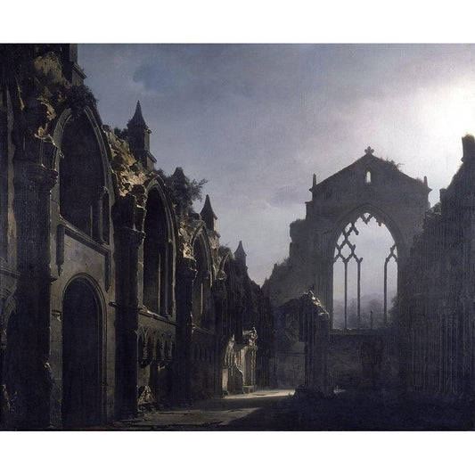 The Ruins of Holyrood Chapel Black Modern Wood Framed Art Print with Double Matting by Daguerre, Louis