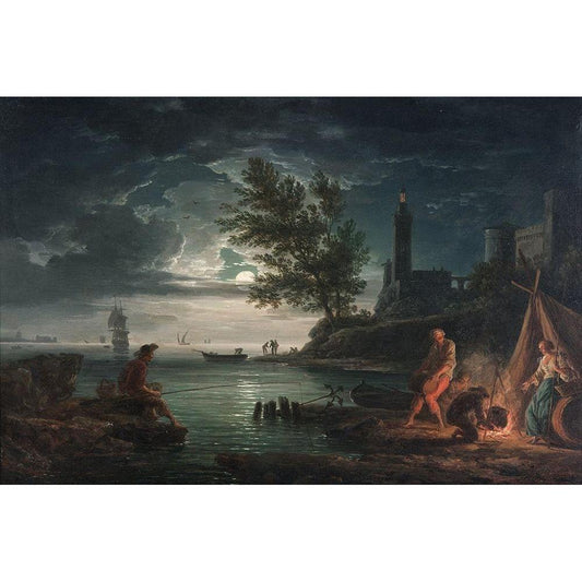 Four Times of the Day, Night Black Modern Wood Framed Art Print with Double Matting by Vernet, Claude Joseph