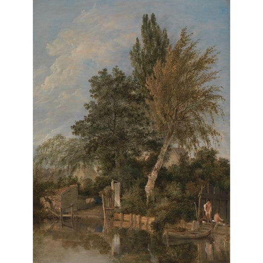 Boys Bathing on the River Wensum, Norwich Black Modern Wood Framed Art Print with Double Matting by Crome, John