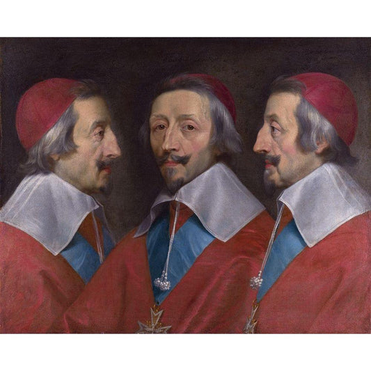 Triple Portrait of Cardinal de Richelieu Black Modern Wood Framed Art Print with Double Matting by de Champaigne, Philippe