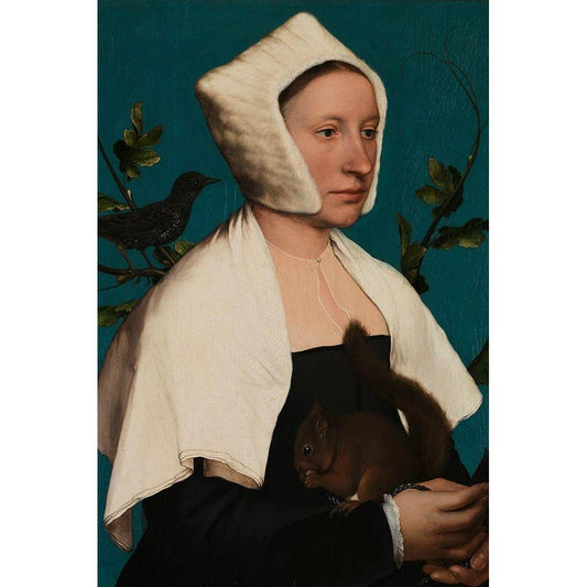Portrait of a Lady with a Squirrel and a Starling Black Modern Wood Framed Art Print with Double Matting by Holbein, Hans