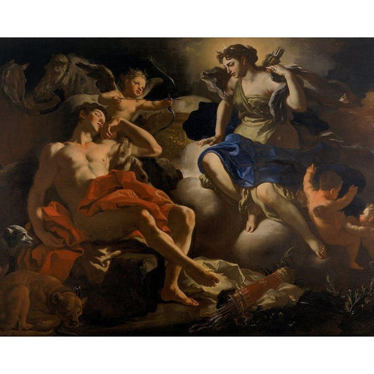 Diana and Endymion Black Modern Wood Framed Art Print with Double Matting by Solimena, Francesco