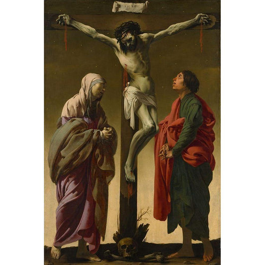 Crucifixion with the Virgin and St John Black Modern Wood Framed Art Print with Double Matting by ter Brugghen, Hendrick