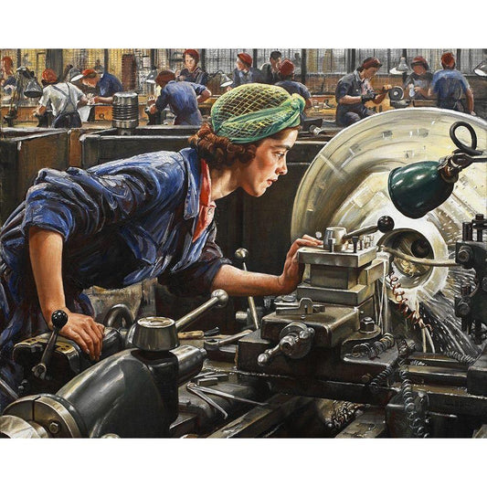 Ruby Loftus Screwing a Breech-ring Black Modern Wood Framed Art Print with Double Matting by Knight, Laura