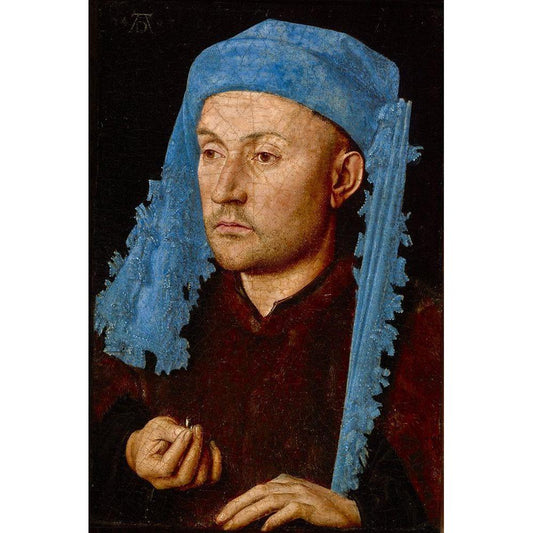 Portrait of a Man with a Blue Chaperon Black Modern Wood Framed Art Print with Double Matting by van Eyck, Jan