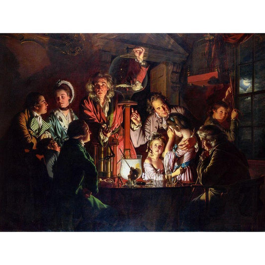 An Experiment on a Bird in the Air Pump Black Modern Wood Framed Art Print with Double Matting by Wright, Joseph