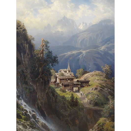 Village in the Bernese Alps Black Modern Wood Framed Art Print with Double Matting by Mosengel, Adolf