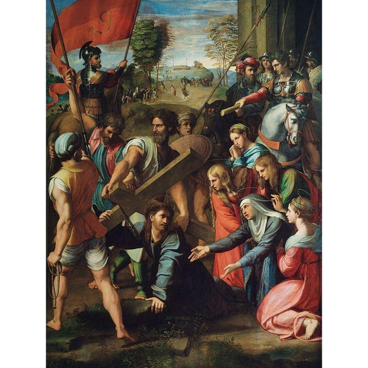 Christ Falling on the Way to Calvary Black Modern Wood Framed Art Print with Double Matting by Raphael
