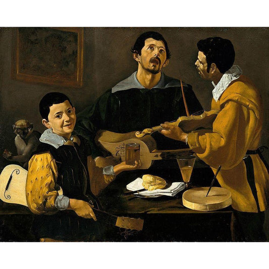 The Three Musicians Black Modern Wood Framed Art Print with Double Matting by Velazquez, Diego
